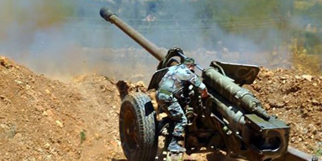 وأشار مراسل سانا في حمص إلى أن الرمايات النارية التي نفذتها مدفعية الجيش العربي السوري ظهر اليوم أسفرت عن “مقتل العديد من إرهابيي “احرار الشام” وتنظيم جبهة النصرة وتدمير 7 آليات مركب على 3 منها رشاشات ثقيلة”.