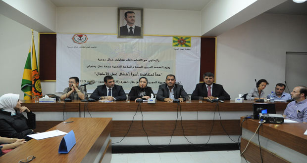 ناقش المشاركون في ورشة العمل التي يقيمها المعهد العربي للصحة والسلامة المهنية اليوم تحت عنوان معا لمكافحة أسوأ أشكال عمل الأطفال مخاطر ظاهرة عمل الأطفال الصحية والاجتماعية والنفسية وآثارها السلبية على نموهم أضافة إلى تسليط الضوء على التشريعات السورية الناظمة لعمل الأطفال والاتفاقيات العربية والدولية في مكافحة هذه الظاهرة.