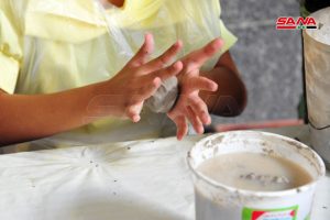 وعن الورشة قالت التشكيلية سناء في تصريح لـ سانا:” وجودي في الخان جاء بدعوة من وزارة الثقافة لإقامة دورات لمختلف الأعمار بفن الخزف واليوم أحببنا دعوة عدد من الأطفال ليتعرفوا على هذا الفن التراثي من خلال جلسة ترفيهية في أحضان مكان تاريخي مهم وملهم يمكن أن يحرضهم على الإبداع وينمي الخيال لديهم”.