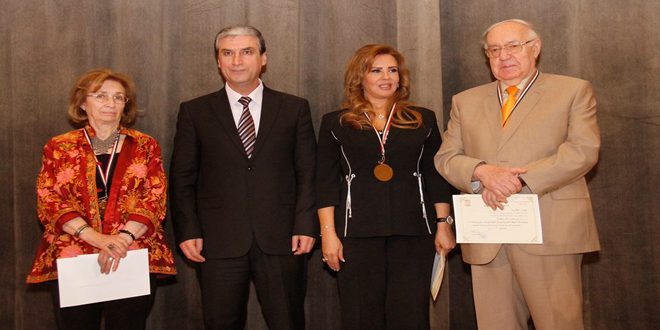 وفي كلمة له خلال حفل التكريم قال وزير الثقافة في حكومة تسيير الأعمال عصام خليل ..”نحن نكرم أنفسنا عندما نكرم المبدعين فهم الضمير الواقف على مفترق الضباب لا يشير إلا إلى حيث ترتدي البساتين خضرتها مهما التبس الطقس وضلت أوهام العابرين” مشيرا إلى أن المبدعين السوريين يستحقون كل التقدير والتكريم لأنهم يرفدون الإبداع العربي والإنساني بأيقونات خالدة و”يكتبون بأرواحهم ذاكرة للريح جوالة في البراري كي لا يضل الربيع طريق العودة إلى أشجاره”.