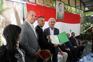 وشملت قائمة المكرمين الفنان وضاح الدقر والفنان الدكتور نذير نصر الله عن فرع دمشق والفنان فريد رسلان عن فرع اللاذقية والفنان بسام صباغ عن حماة والفنان محمود جوابرة عن فرع درعا.