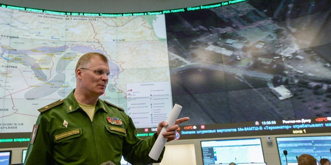 وقال المتحدث باسم وزارة الدفاع الروسية الجنرال إيغور كوناشينكوف اليوم “إن شركاءنا من الدول الأخرى الذين يرون في تنظيم داعش عدوا حقيقيا ينبغي تدميره يساعدوننا بهمة بتقديم معلومات عن القواعد والمخازن ومواقع القيادة ومعسكرات التدريب الإرهابية أما من يملكون رأيا مختلفا عن هذا التنظيم الإرهابي فيبحثون بشكل دائم عن ذرائع لرفض التعاون في المعركة ضد الإرهاب الدولي”.