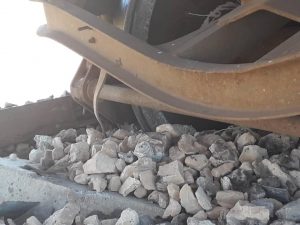 تعرض قطار شحن الفوسفات بريف حمص الشرقي اليوم لاعتداء إرهابي تخريبي ما أدى إلى جنوح القاطرة وعربة الركاب وشاحنة المعايرة وصهريجي فوسفات واشتعال النيران في القاطرة وتعرض طاقم القطار لإصابات مختلفة ويتم تقديم الإسعافات والعلاج اللازم لهم.
