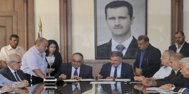 وقعت وزارتا الكهرباء والزراعة والإصلاح الزراعي مذكرة تفاهم واتفاقية تعاون في مجال نشر الوعي الطاقي وترسيخ مفهوم ترشيد استهلاك الطاقة واستخدام الطاقات المتجددة للفلاحين وتنفيذ مشروع كهروضوئي باستطاعة /25/ كيلوواط للاستفادة من الطاقة الشمسية في انتاج الكهرباء.