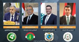 وأكد وزراء الزراعة السوري المهندس محمد حسان قطنا واللبناني الدكتور عباس الحاج حسن والعراقي المهندس محمد كريم الخفاجي والأردني المهندس خالد الحنيفات في البيان الختامي الصادر اليوم عن أعمال لقائهم الرباعي في بيروت ضرورة وضع نماذج موحدة للشهادات الصحية النباتية والشهادات الصحية البيطرية بين الدول الأربع تستند الى المعايير الدولية وإلى اللوائح التفصيلية لأسس ومعايير منح كل منها.