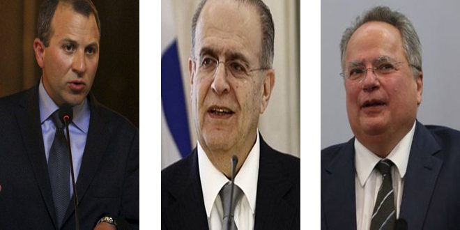 أكد وزراء الخارجية اللبناني جبران باسيل والقبرصي يوانيس كاسوليدس واليوناني نيكوس كوتسياس ضرورة التوصل إلى حل سياسي للأزمة في سورية والحفاظ على وحدة أراضيها وسيادتها.
