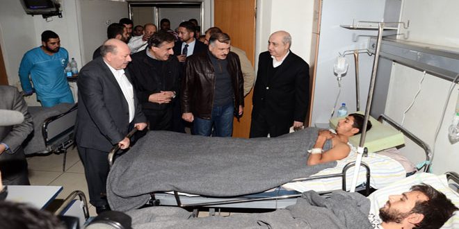 زار وزير الكهرباء المهندس محمد زهير خربوطلي ووزير الموارد المائية المهندس نبيل الحسن اليوم جرحى الجيش والقوات المسلحة واطلعا على الخدمات الصحية المقدمة لهم في مشفى حلب الجامعي.