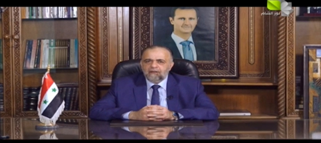 ورفع وزير الأوقاف إلى السيد الرئيس بشار الأسد باسمه وباسم العلماء وأرباب الشعائر الدينية والعاملين في وزارة الأوقاف أسمى آيات التهاني والتبريك وأخلص معاني الوفاء معاهدين سيادته بأن يكونوا أهلاً لحمل الأمانة وتحمل المسؤولية على مستوى الوطن وتكريس الأخلاق والمبادئ بالشكل والمضمون ومدافعين عن حقوق الأمة ومقدساتها متأصلين بوحدتنا الوطنية.