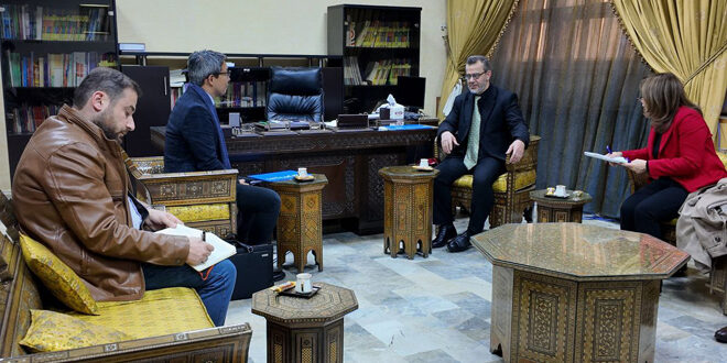وتخلل الاجتماع الذي جرى في مبنى الوزارة بدمشق وفق ما نشرته الوزارة على قناتها الرسمية على تلغرام مناقشات حول تنظيم ملف التربية والتعليم، ولا سيما في مجال ترميم المدارس وتأهيلها، وتشجيع الطلاب على العودة إلى المدارس، وتعويض الفاقد التعليمي، والرقي بمستوى التعليم في سوريا.