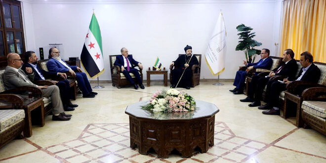 بحث وزير التعليم العالي والبحث العلمي الدكتور مروان الحلبي مع المطران “مار أندراوس بحي” النائب البطريركي لبطريركية أنطاكية وسائر المشرق للسريان الأرثوذكس في دمشق، والدكتور “راكان رزوق” رئيس جامعة أنطاكية الدولية الخاصة، والوفد المرافق الواقع الأكاديمي والعلمي في الجامعة، ودور الجامعات في تعزيز السلم الأهلي والتنمية المستدامة.