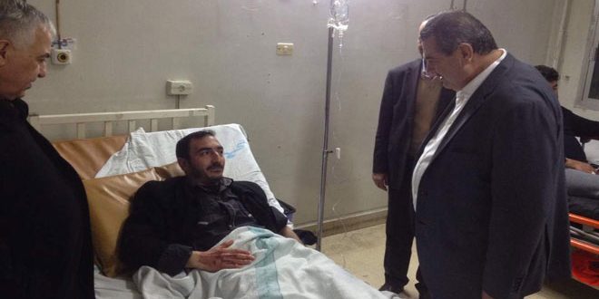 زار وزير التعليم العالي الدكتور عاطف النداف الجرحى الذين أصيبوا بقذائف أطلقتها المجموعات المسلحة على حي المزة مساء اليوم واطمأن على حالاتهم في مشفى المواساة وعلى الخدمات والرعاية الطبية المقدمة لهم.
