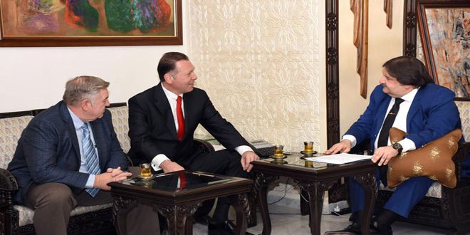 أكد وزير الثقافة محمد الأحمد خلال لقائه وفدا من الناشطين الأمريكيين برئاسة ماركس ساوث ورث أن سورية تقف منذ سبع سنوات بوجه أعتى هجمة شرسة على سيادتها وثقافتها وآثارها.
