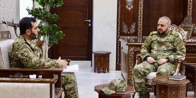 بحث وزير الدفاع اللواء المهندس مرهف أبو قصرة مع مدير إدارة شؤون الضباط في الوزارة العميد محمد المنصور، آخر المستجدات والإجراءات التنظيمية والإدارية المتبعة في إدارة شؤون الضباط.