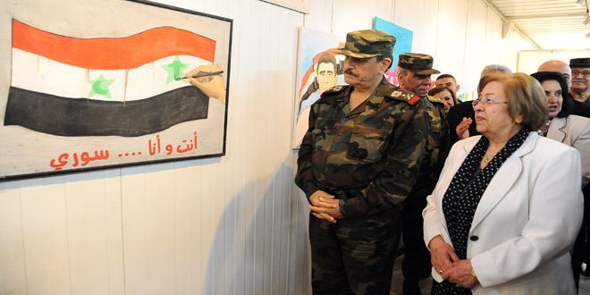 وزير الدفاع يفتتح معرض رسم تشكيلي لأبناء وبنات الشهداء
