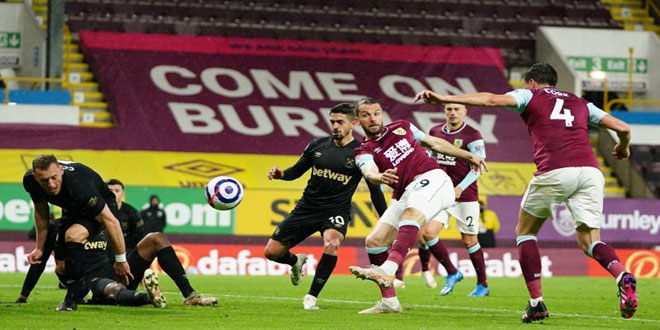 فاز فريق وست هام يونايتد على مضيفه بيرنلي بهدفين مقابل هدف واحد في المباراة التي جمعتهما ضمن منافسات الجولة الرابعة والثلاثين من الدوري الإنكليزي الممتاز لكرة القدم.