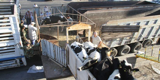وصلت إلى مرفأ طرطوس ظهر اليوم الدفعة الثانية من الأبقار المستوردة البالغ عددها 850 بقرة من الأبقار المتعاقد عليها بين وزارة الزراعة وألمانيا.