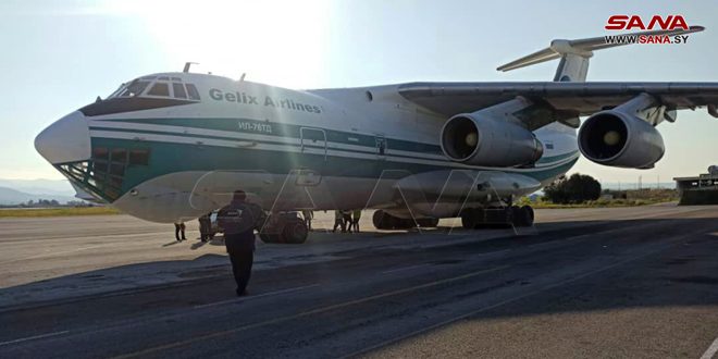 وصلت إلى مطار اللاذقية الدولي اليوم طائرة إمارتية تحمل على متنها 26 طناً من المساعدات الإغاثية والغذائية.