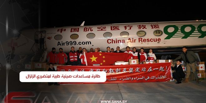 وصول طائرة مساعدات صينية تحمل مواد إغاثية طبية لمتضرري الزلزال