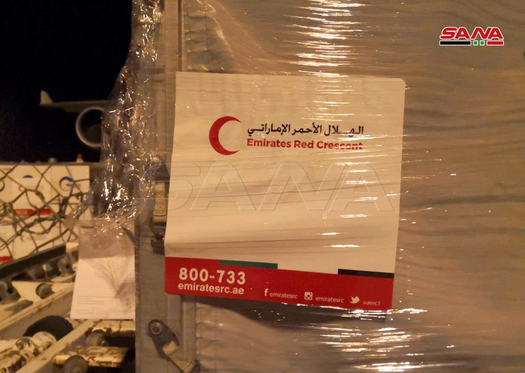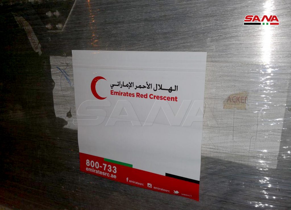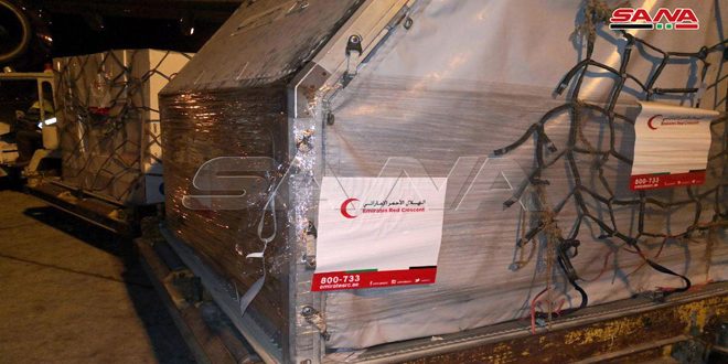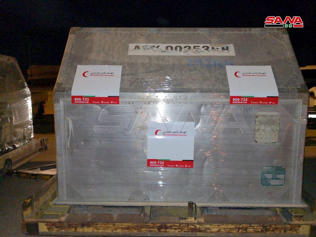 وصلت إلى مطار دمشق الدولي مساء اليوم طائرة مساعدات طبية مقدمة من الهلال الأحمر الإماراتي إلى الهلال الأحمر العربي السوري وذلك للمساعدة في التصدي لوباء كورونا.