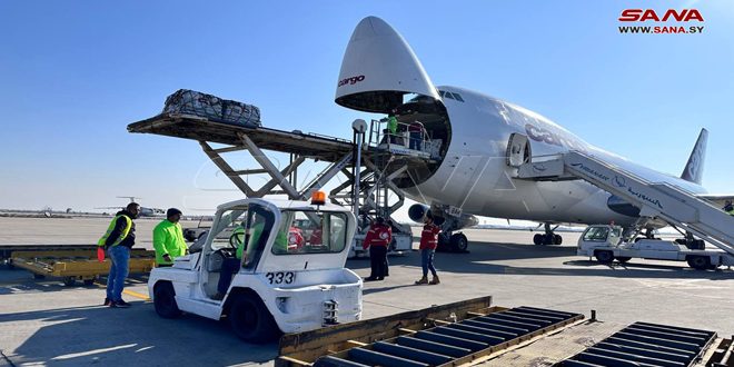 وقال مدير مطار دمشق الدولي بشار غفرة: إن طائرتين إماراتيتين وصلتا اليوم إلى مطار دمشق تحمل إحداهما 87 طناً و 720 كيلوغراماً من المواد الغذائية والبطانيات، والثانية تحمل 35 طناً و360 كيلوغراماً من المواد الغذائية، مشيراً إلى أن جميع طواقم المطار بجهوزية كاملة على مدار الساعة لاستلام المساعدات الإغاثية، ونقلها إلى المناطق المنكوبة بالسرعة الكلية.