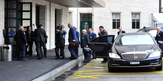 وصول وفد الجمهورية العربية السورية إلى مقر الأمم المتحدة في جنيف لعقد اجتماع مع دي ميستورا