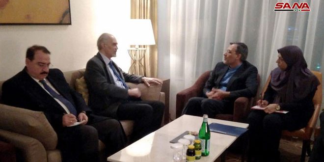 أجرى وفد الجمهورية العربية السورية برئاسة الدكتور بشار الجعفري لقاء مساء اليوم مع الوفد الإيراني برئاسة كبير مساعدي وزير الخارجية الإيراني للشؤون السياسية الخاصة حسين جابري أنصاري في إطار اجتماع أستانا الحادي عشر حول الأزمة في سورية.