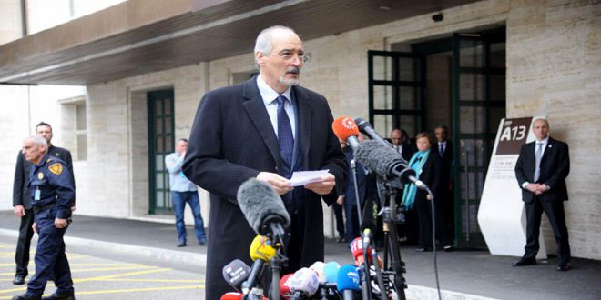وفي وقت سابق اليوم عقد وفد الجمهورية العربية السورية برئاسة الجعفري في مقر الأمم المتحدة بجنيف جلسة محادثات مع دي ميستورا في إطار الجولة الرابعة من الحوار السوري السوري في جنيف.