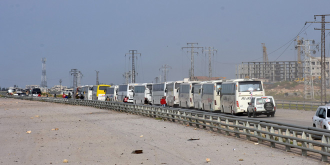 وصول حافلات إلى مدينة حلب تقل العشرات من أهالي بلدتي كفريا والفوعة