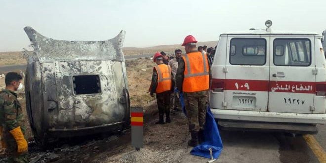 توفي سائق صهريج لنقل المشتقات النفطية جراء حريق نشب في كبين الصهريج بموقع البريج في ريف حمص على الطريق الدولي حمص-دمشق.