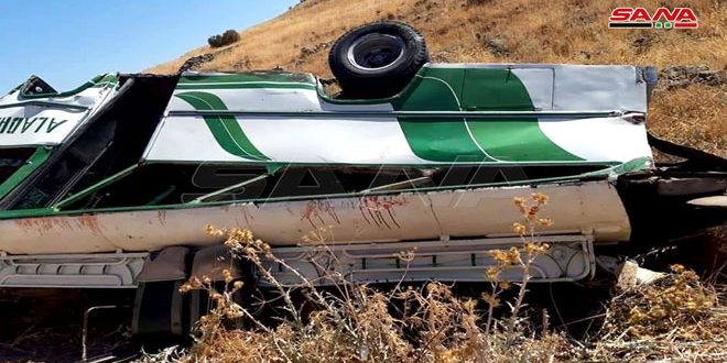 وذكر مدير منطقة صلخد العقيد إحسان عيسى في تصريح لمراسل سانا أن باص نقل ركاب كان متوجهاً إلى مدينة صلخد تدهور وانقلب قرب محطة الشاهين جنوب بلدة حبران على طريق السويداء-صلخد بسبب السرعة الزائدة ما أدى إلى إصابة جميع الركاب بإصابات متفاوتة حيث جرى نقلهم إلى مشفى الشهيد زيد الشريطي بمدينة السويداء لتلقي العلاج اللازم.