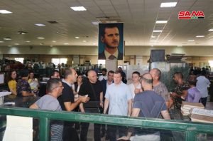 اطلع وفد روسي برئاسة أندريه أفروف النائب الأول لرئيس هيئة الجمارك في الاتحاد الروسي على آلية العمل في أقسام مركز النافذة الواحدة في مرفأ اللاذقية وذلك على هامش الاجتماع المشترك السوري الروسي لمتابعة أعمال المؤتمر الدولي حول عودة اللاجئين والمهجرين السوريين المنعقد حالياً في قصر المؤتمرات بدمشق.
