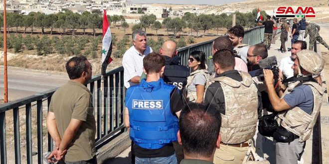 زار وفد إعلامي يمثل أكثر من 20 وسيلة إعلامية روسية وأوروبية بلدات ريف إدلب الجنوبي التي حررها الجيش العربي السوري مؤخراً من الإرهاب واطلع على واقع مدينة خان شيخون ومخلفات الإرهابيين فيها.
