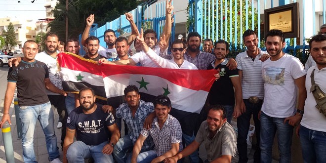 نظم ممثلون عن الجالية العربية السورية وفرع الاتحاد الوطني لطلبة سورية في قبرص زيارة شكر وتقدير إلى مقر السفارة الروسية في نيقوسيا صباح اليوم تعبيرا عن تقدير الشعب السوري لروسيا وقيادتها وجيشها على وقوفهم إلى جانب سورية في محاربة الإرهاب.