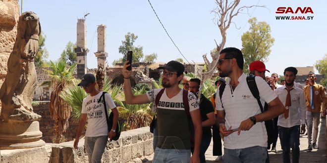 من جهتها عبرت سارة بحبوح ناشطة سياحية وثقافية عن دهشتها بجمالية المكان وقالت إنها للوهلة الأولى عند مشاهدتها المسرح الروماني شعرت بالفخر نتيجة عظمة الحضارات التي تعاقبت على أرض سورية، بينما لفتت ندى السعدي محاضرة بكلية السياحة بدمشق إلى أن العمل بالقطاع السياحي يسهم بزيادة الخبرات داعية الكوادر الجديدة إلى إبراز الوجه الحقيقي لسورية وحضارتها.