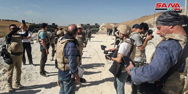 زار وفد إعلامي يمثل نحو 60 وسيلة إعلامية من أوروبا وآسيا وأمريكا اللاتينية بلدات ريفي إدلب الجنوبي وحماة الشمالي اليوم للاطلاع على واقعها بعد تحريرها من الإرهاب والخدمات الأساسية التي تقدمها الدولة للأهالي العائدين إليها.
