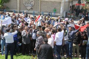 وقفات تضامنية في عدد من المحافظات استنكارا للعدوان الثلاثي على سورية