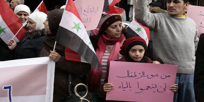 وقفة احتجاجية تنديدا باستمرار قطع التنظيمات الإرهابية المياه عن دمشق