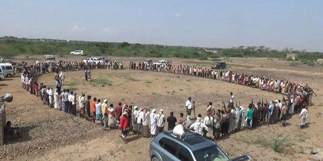 نظمت حشود قبلية من أبناء محافظة الحديدة اليمنية اليوم وقفة احتجاجية للتنديد بما يقوم به تحالف العدوان السعودي من حرب وحصار اقتصادي على الشعب اليمني.