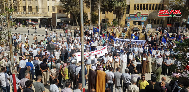 وقفة احتجاجية في الحسكة تنديداً باستمرار المحتل التركي وإرهابييه بقطع المياه لأكثر من شهرين 2021-09-02