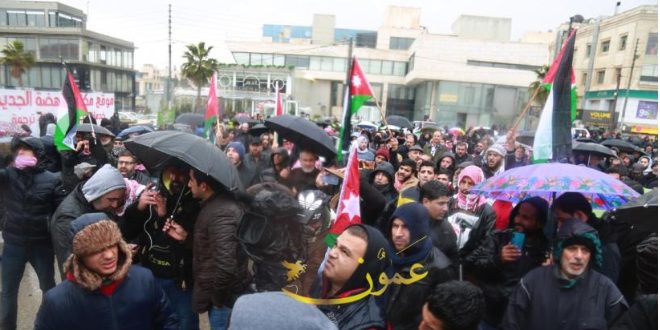 احتشد عشرات الأردنيين أمام السفارة الأمريكية في عمان اليوم تنديداً ورفضاً لما تسمى “صفقة القرن” التي طرحها الرئيس الأمريكي دونالد ترامب مؤخراً.