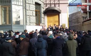 وقفة تضامنية بمقر السفارة السورية في موسكو دعماً للمتضررين من كارثة الزلزال