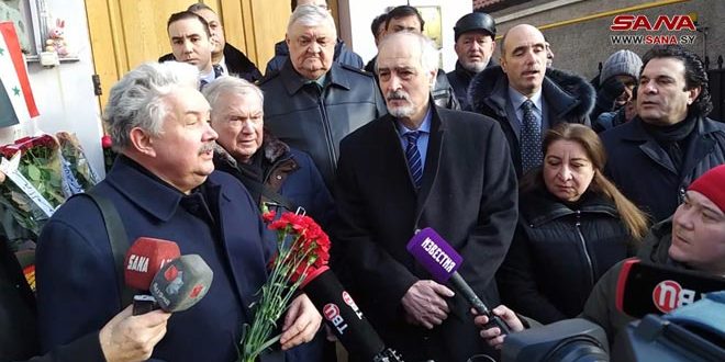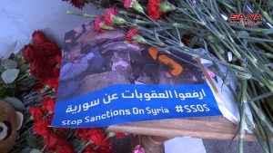 وأشار السفير الجعفري إلى حاجة سورية إلى الآليات الهندسية الثقيلة لرفع الردم والحجارة من البيوت المنهارة، موضحاً أن سورية لا تجد هذه الآليات بسبب العقوبات الغربية، بل وحتى المساعدات الإنسانية يمنعونها عنها تحت عناوين سياسية خادعة، معرباً عن الشكر الجزيل لكل من ساهم وسعى إلى هذه الوقفة التضامنية التي تؤكد القرابة الحقيقية والإنسانية بين الشعبين السوري والروسي”.