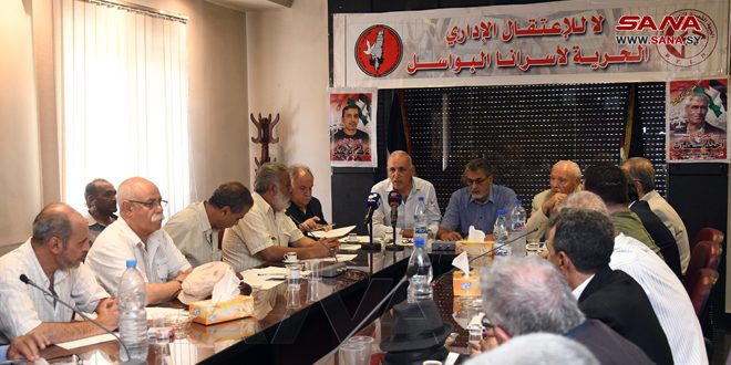 دعا المشاركون في لقاء تضامني مع الأسرى والمعتقلين في سجون الاحتلال الإسرائيلي أقيم في مقر المجلس الوطني الفلسطيني بدمشق المجتمع الدولي والمؤسسات الإنسانية والحقوقية إلى التدخل العاجل لحماية الأسرى والضغط على الاحتلال وإلزامه بتطبيق قواعد القانون الدولي الإنساني وتحريرهم من الأسر.
