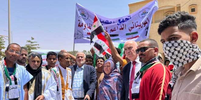 نظم تجمع الشباب الموريتاني والحزب الوحدوي الاشتراكي والمنتدى الموريتاني لدعم الشعب الفلسطيني والدفاع عن القضايا العاجلة وقفة تضامنية أمام السفارة السورية في العاصمة الموريتانية نواكشوط تنديداً بالعدوان الإسرائيلي على سورية واستهداف مبنى القنصلية الإيرانية في دمشق.