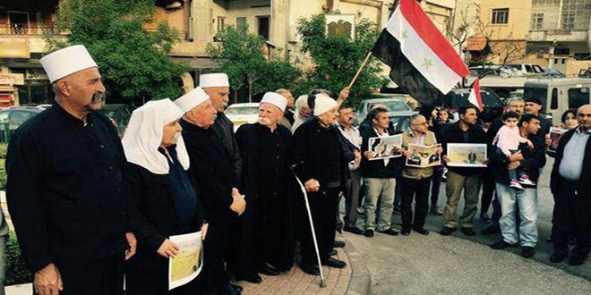 تضامنا مع الإضراب المفتوح عن الطعام للأسرى السوريين والفلسطينيين في سجون الاحتلال الإسرائيلي نظم أهالي الجولان العربي السوري المحتل وقفة تضامنية مساء أمس في ساحة المجاهد سلطان باشا الأطرش في مجدل شمس المحتلة.