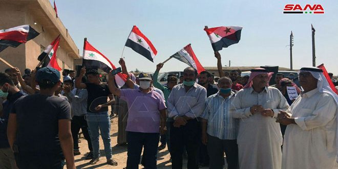 نفذ أهالي قرية البجارية بريف الحسكة الشمالي اليوم وقفة احتجاجية شعبية ضد وجود قوات الاحتلال الأمريكي واستنكاراً لعدوانها على حاجز للجيش العربي السوري في تل الذهب بريف مدينة القامشلي.