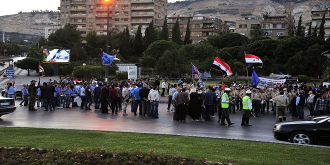 نظم فرع دمشق لاتحاد شبيبة الثورة ومفوضية دمشق لكشاف سورية اليوم وقفة عز تم خلالها إضاءة شموع تخليدا لذكرى الشهداء بعيدهم وذلك في ساحة الأمويين بدمشق.