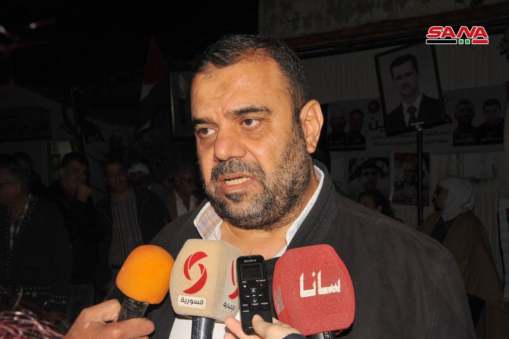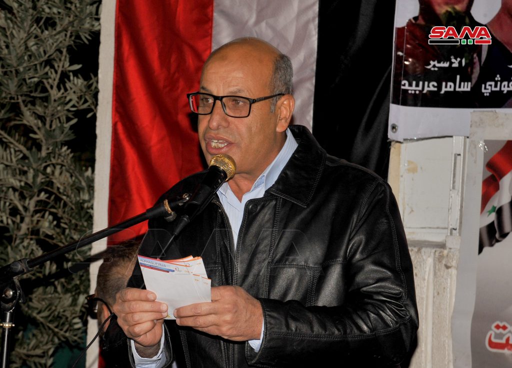 وفي كلمة له أشار الأسير المحرر أحمد أبو سعود عضو اللجنة المركزية للجبهة الشعبية لتحرير فلسطين مسؤول الأسرى والمحررين الفلسطينيين في الشتات إلى معاناة الأسرى الفلسطينيين في معتقلات الاحتلال الصهيوني الذين يخوضون غمار معارك الصمود الأسطورية معبراً عن دعم ووقوف شعب بلاده ضد كل الاعتداءات على الأراضي السورية .