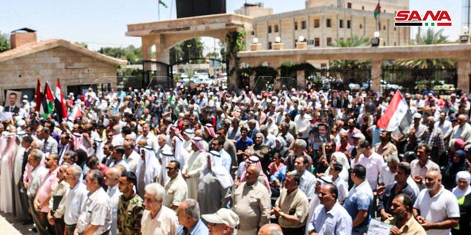وقفة وطنية جماهيرية في دير الزور رفضاً وتنديداً بالإجراءات القسرية المفروضة على سورية 2020-06-21 تصوير: مازن العنان