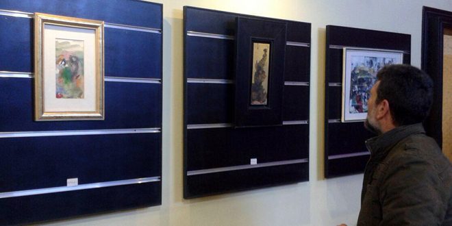 المعرض الذي انطلق امس ويستمر شهرا يضم 23 لوحة اختلفت اساليبها وموضوعاتها اضافة الى خمس منحوتات من الخشب والبرونز والبازلت والرخام حيث يتميز بمشاركة قامات فنية بينهم مدرسين من جامعة دمشق فضلا عن تخصيصه حيزا لمجموعة من الاعمال للراحل الفلسطيني محمد الوهيبي والراحلين سامر بلان وسليم العشعوش من السويداء كما يوضح مدير الصالة الفنان ناصر عبيد.